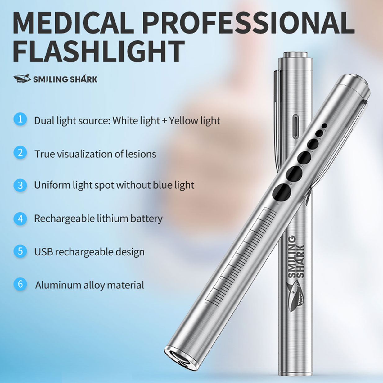 Smiling SharkYK1960 Mini Super Bright Flashlight led White and yellow light Medical Light Type-c Rechargeable Medical pupil lamp