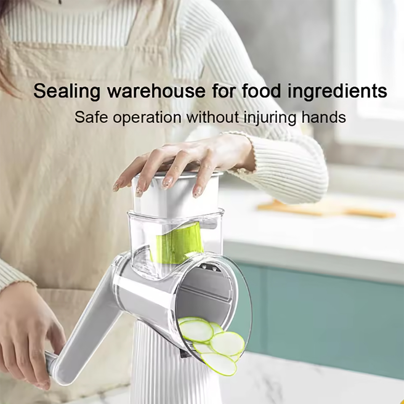 | استفاده ایمن با طراحی محفظه غذای ایزوله و جداسازی از تیغههای برش | |