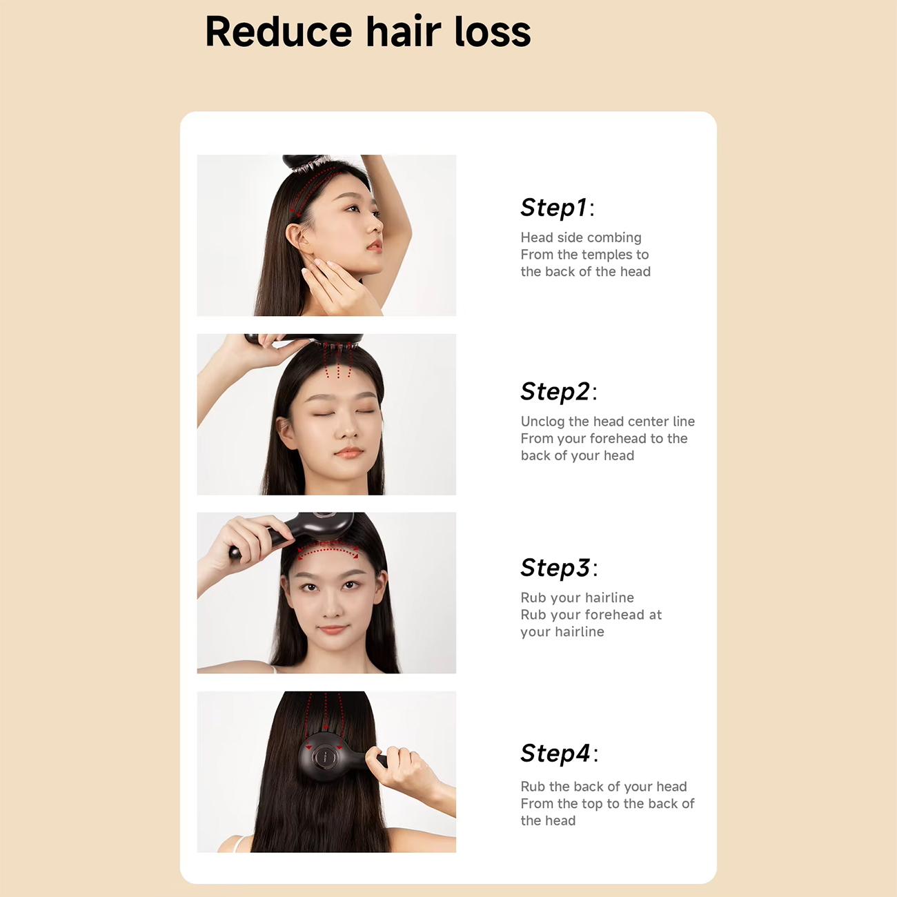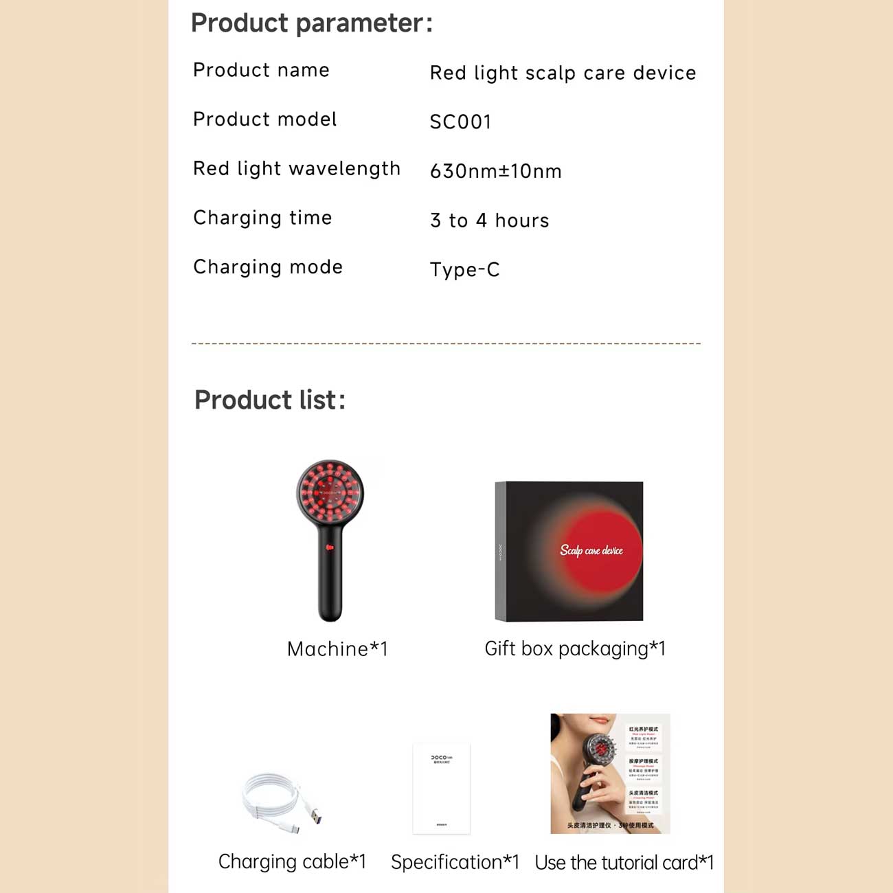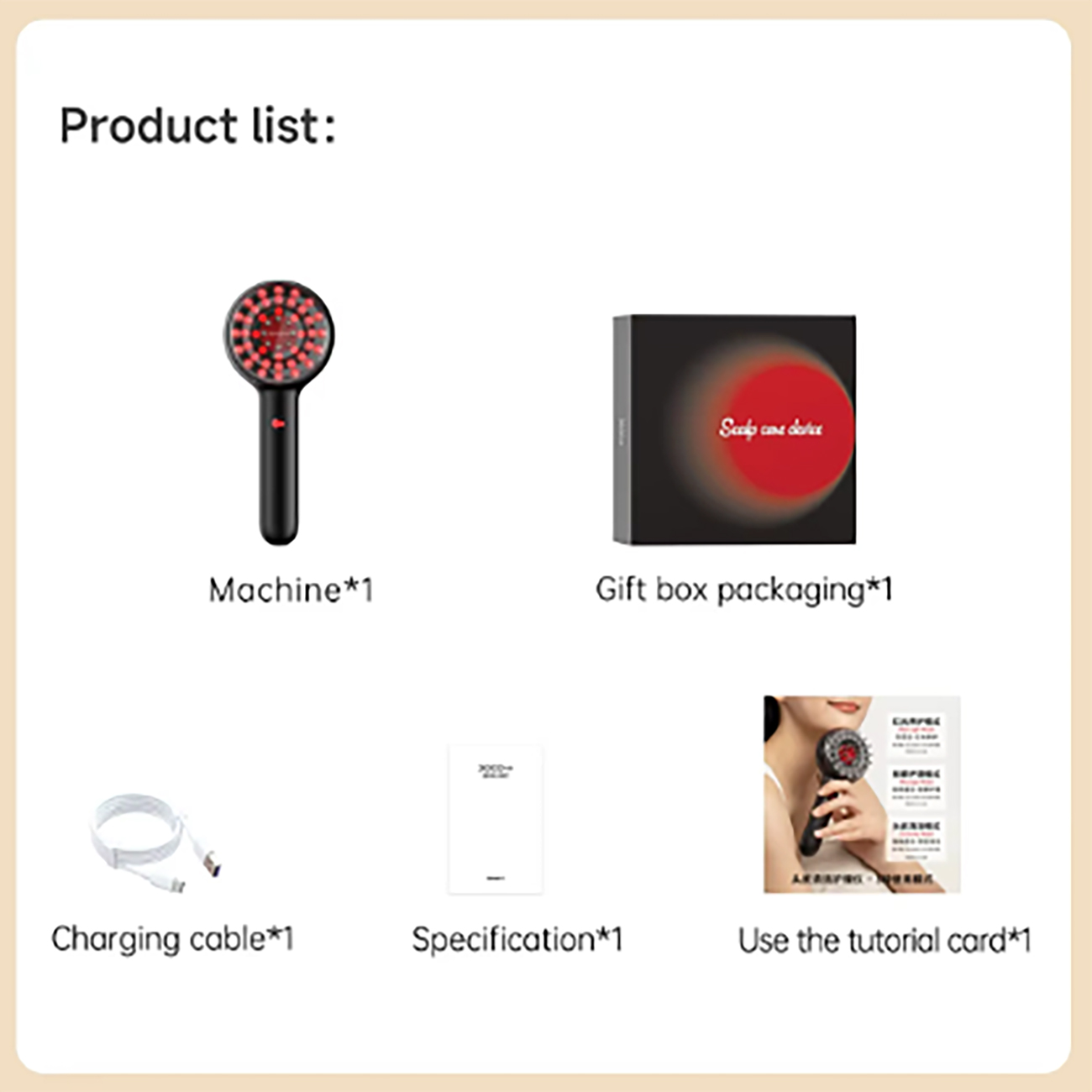 | دارای سه حالت مختلف | نور قرمز درمانی برای رشد مو/ حالت ماساژ برای مراقبت/ حالت تمیز کردن پوست سر |