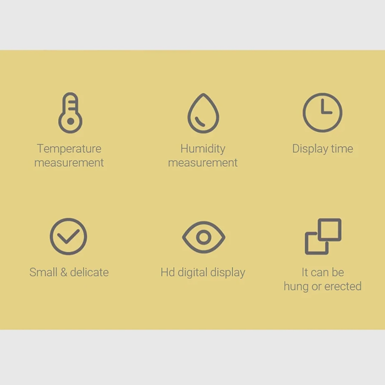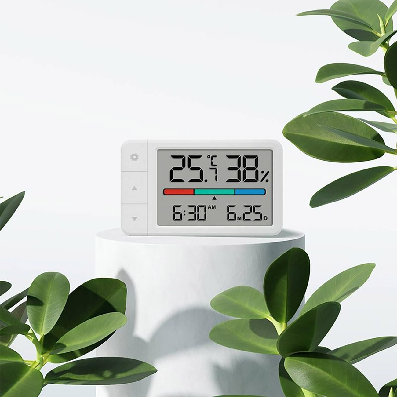 مدل MHO-C306 (Xiaomi Miaomiaoce Mini Thermometer and Hygrometer Watch)، با طراحی مینیمال و دیواری/میزی، برای اتاق خواب، گلخانه یا حتی مغازه ایدئاله.