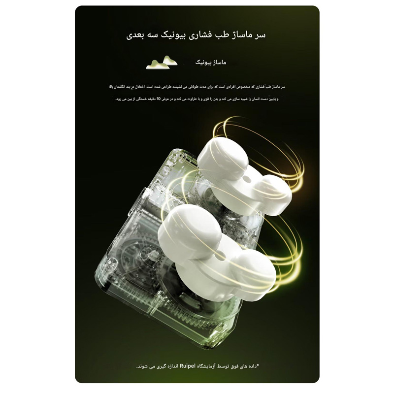 | سایر ویژگی ها | استانداردهای پیاده سازی GB4706.1-2005 GB4706.10-2008,پارچه لاکرا سازگار با پوست,دکمه های سیلیکونی,تایمر خودکار 10 دقیقه ای,دارای یک حامی کوچک روپل,کنترل عملکرد 3 حالته,ماساژور طب فشاری بیونیک 3D,طراحی باریک و ارگونومیک به صورت قابل جدا شدن,کمپرس گرم گردان,ریل عمودی جهت جابجایی محل سری های ماساژ,ماساژ در نقطه ثابت |