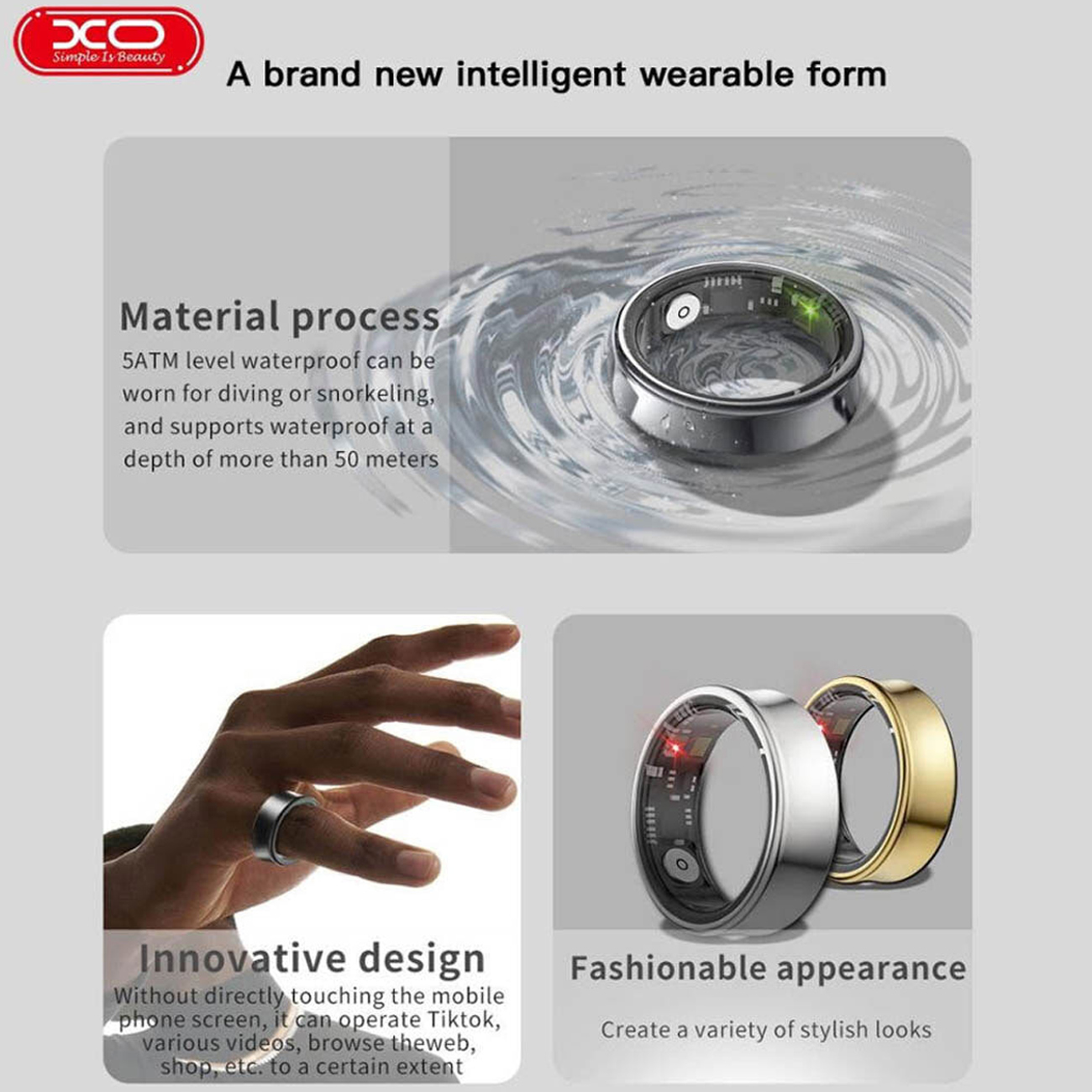 XO RS01 Smart Ring size 10 (inner diameter 19.9 mm, titanium alloy)