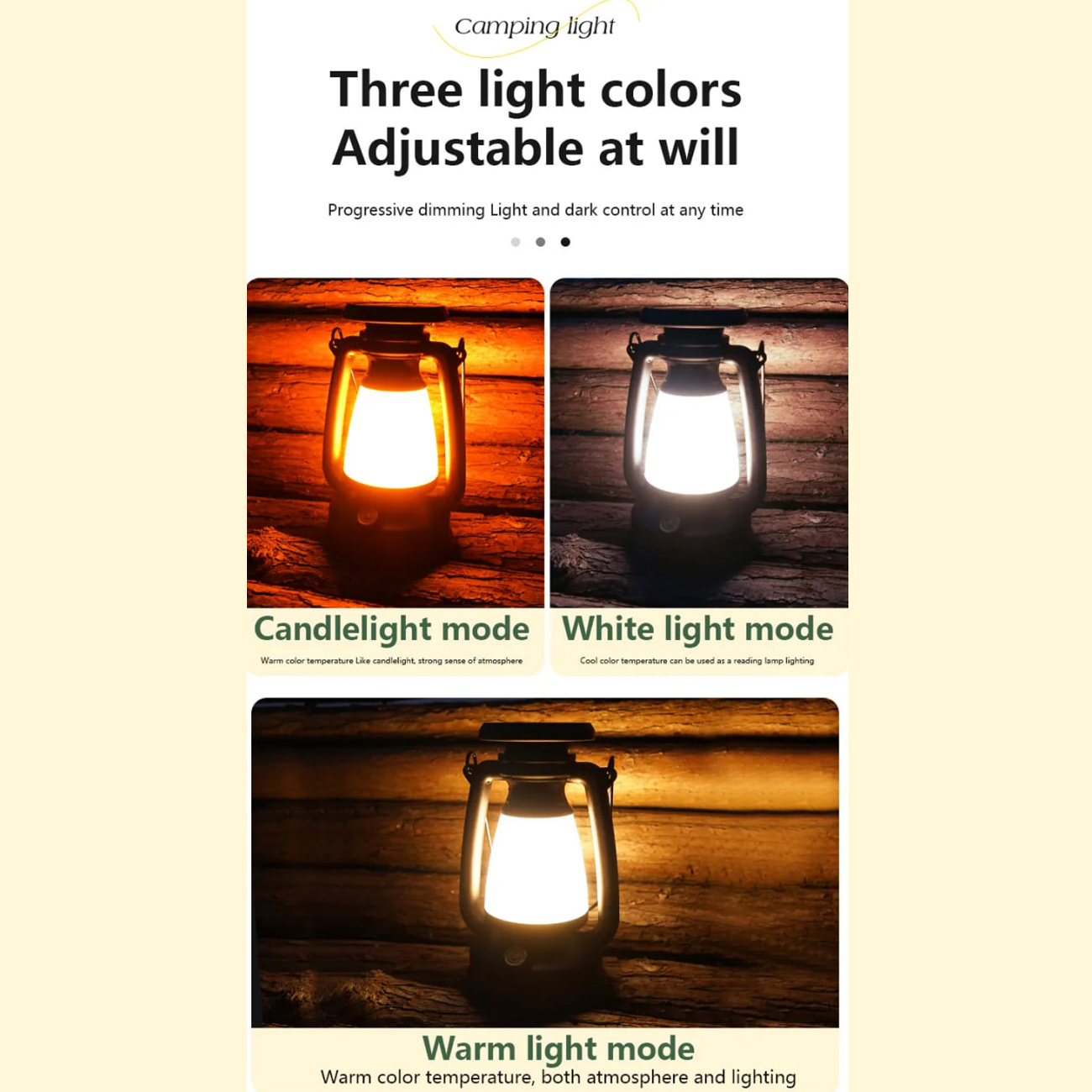 | تعداد حالت نور | 3 حالت (Candlelight, Warm Light, White Light) |