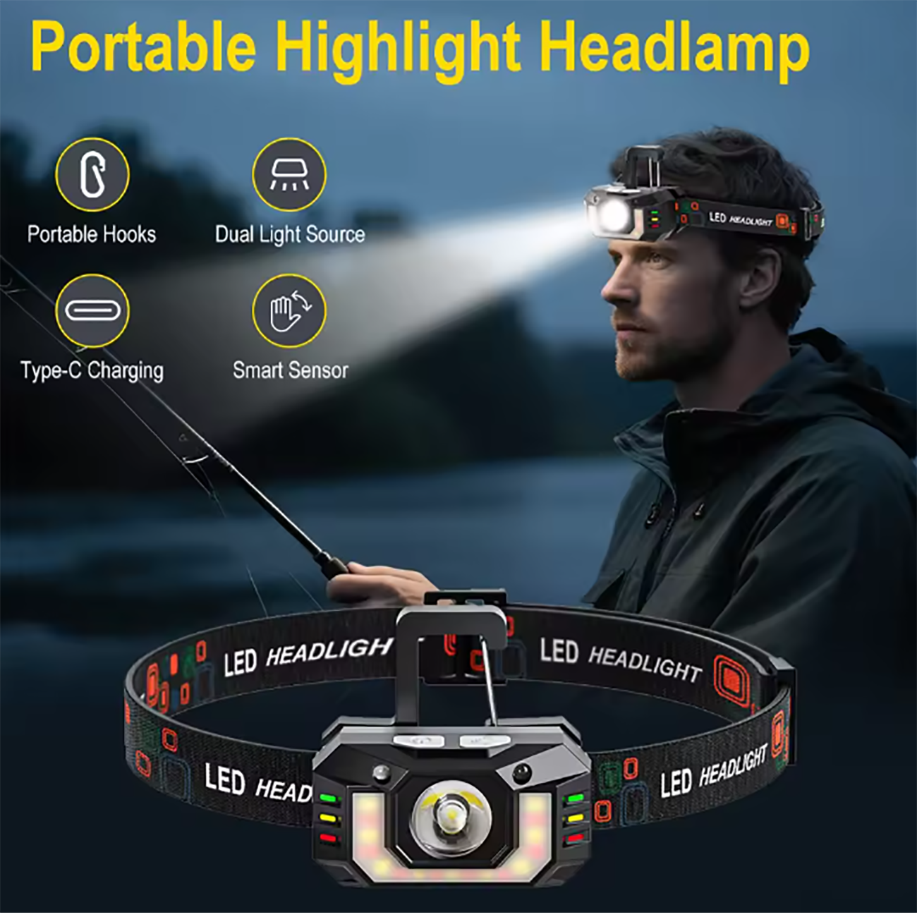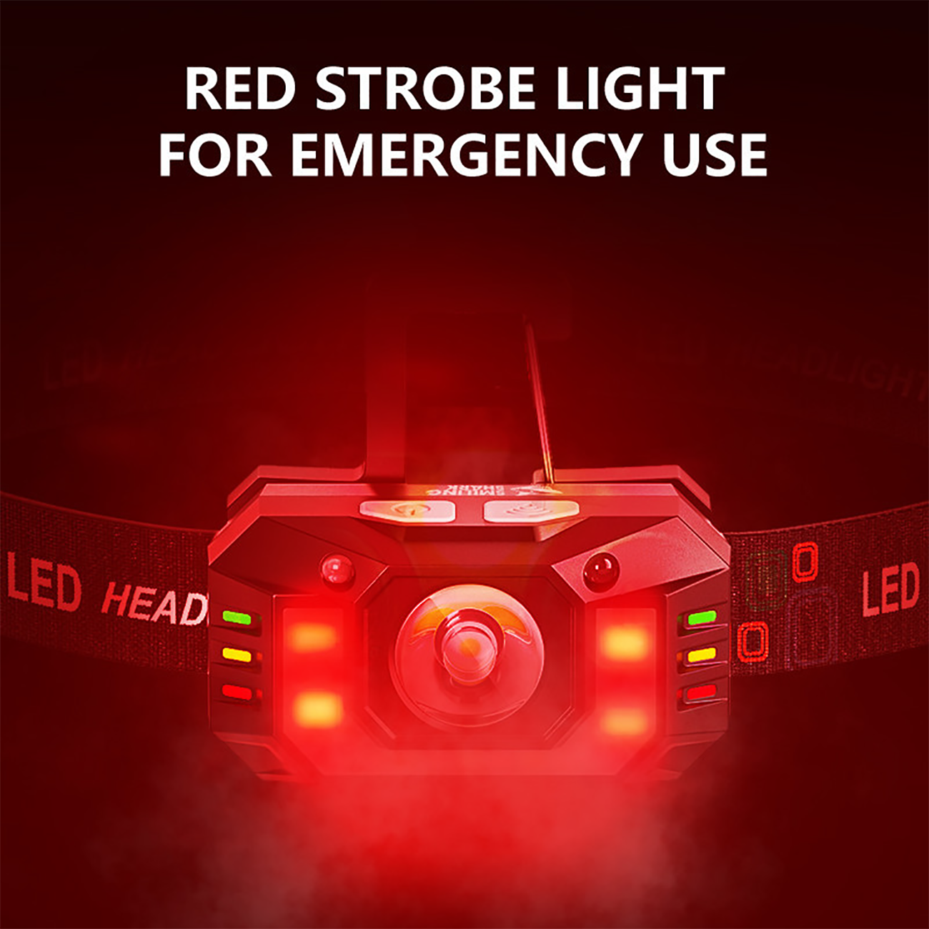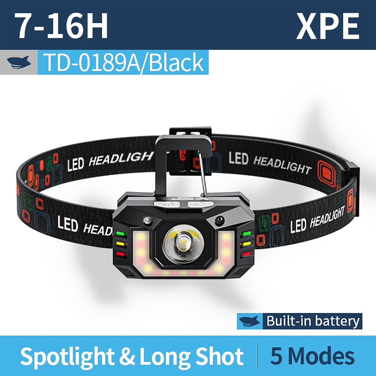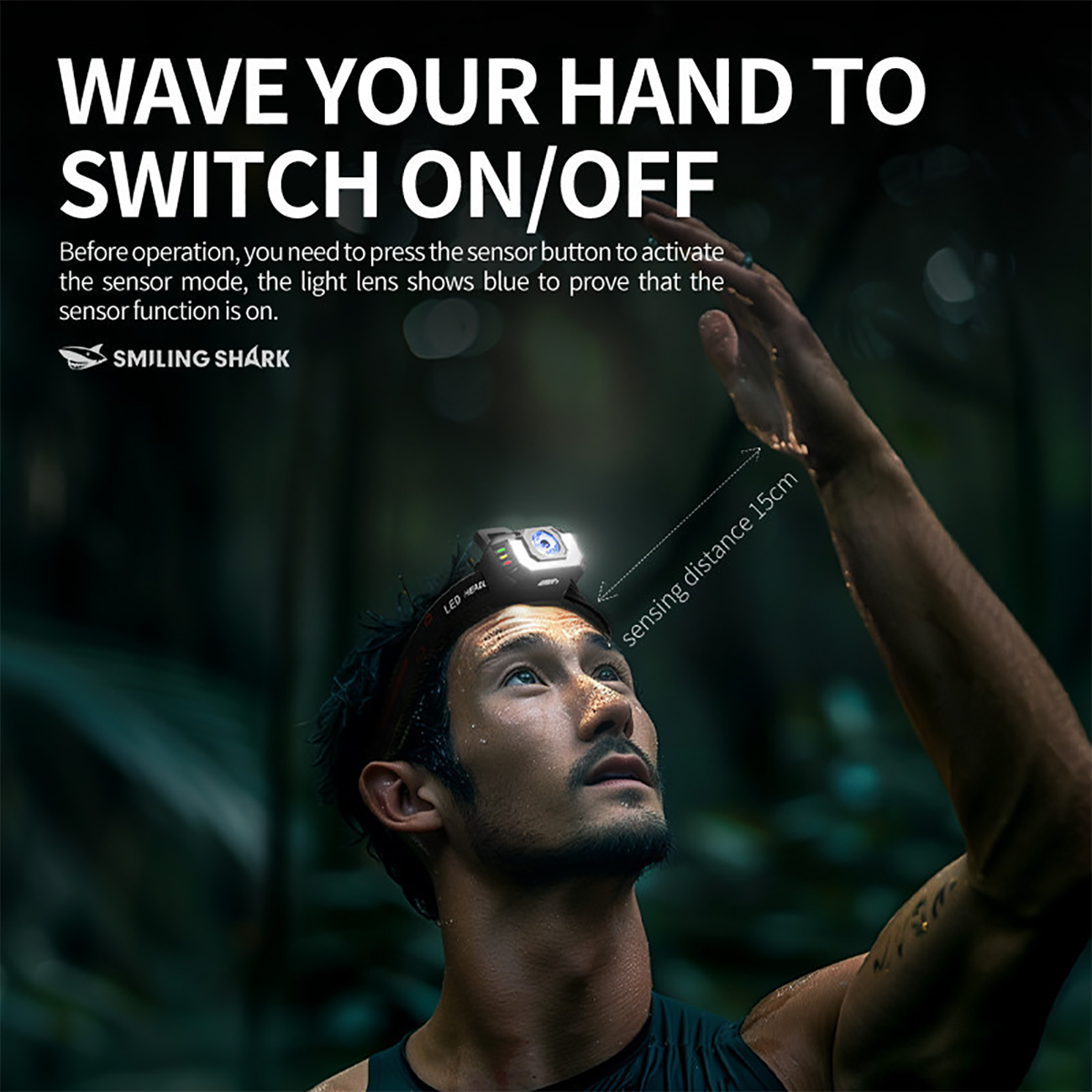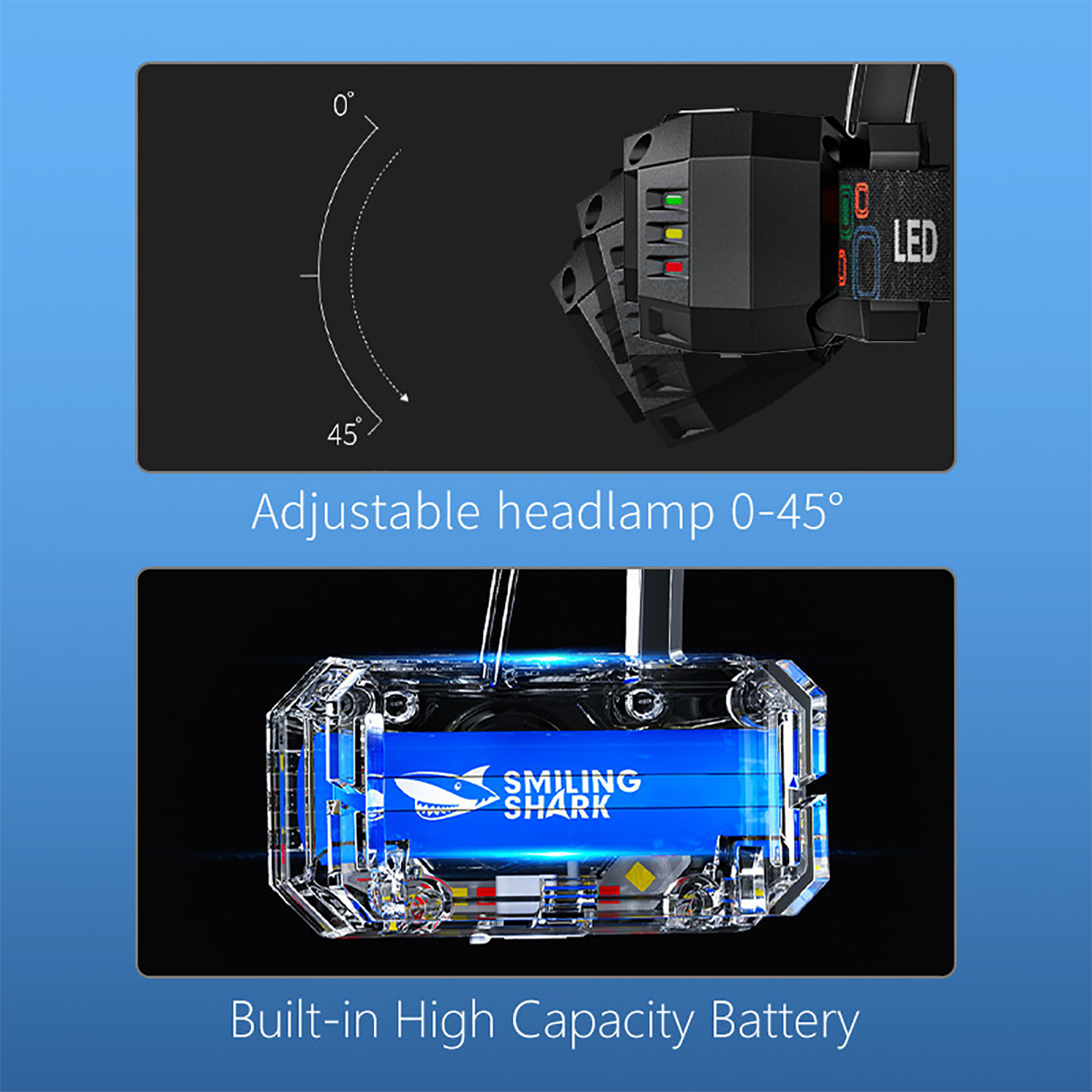 Smiling Shark TD0189 LED Head Lamp Portable Super Bright Keychain Light Type-c Rechargeable Headlight with Red Light Warning lights Waterproof