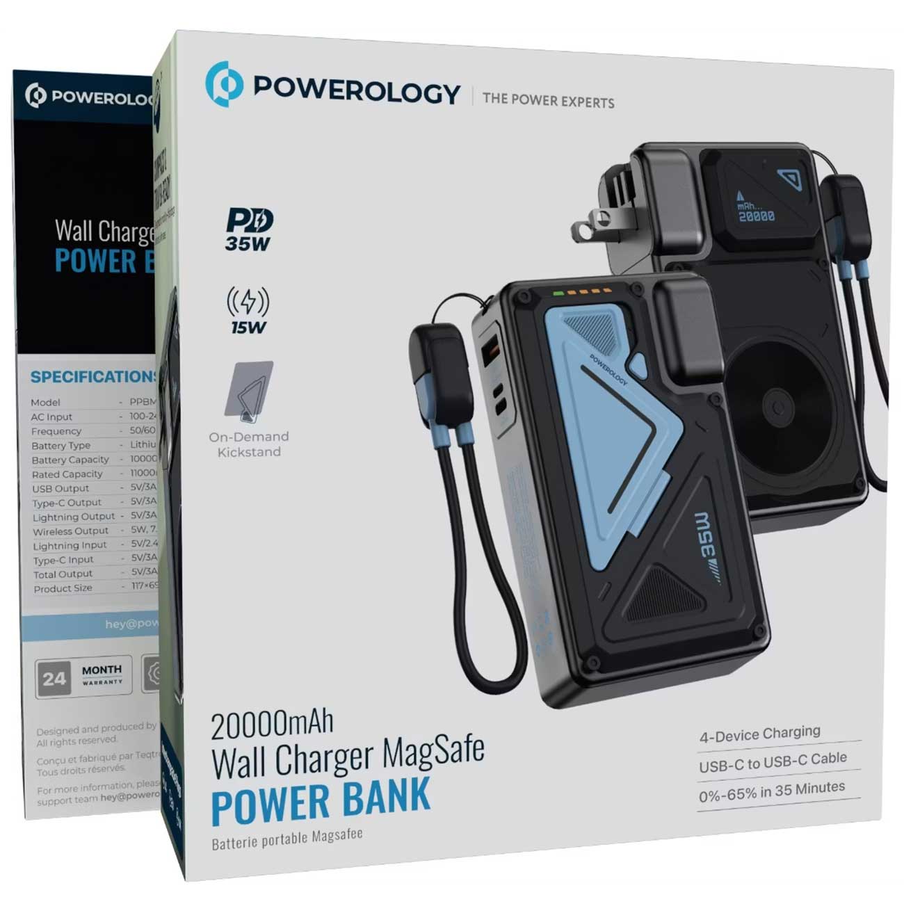 Powerology Wall Charger MagSafe Power Bank 20000mAh PPBMH104BK
