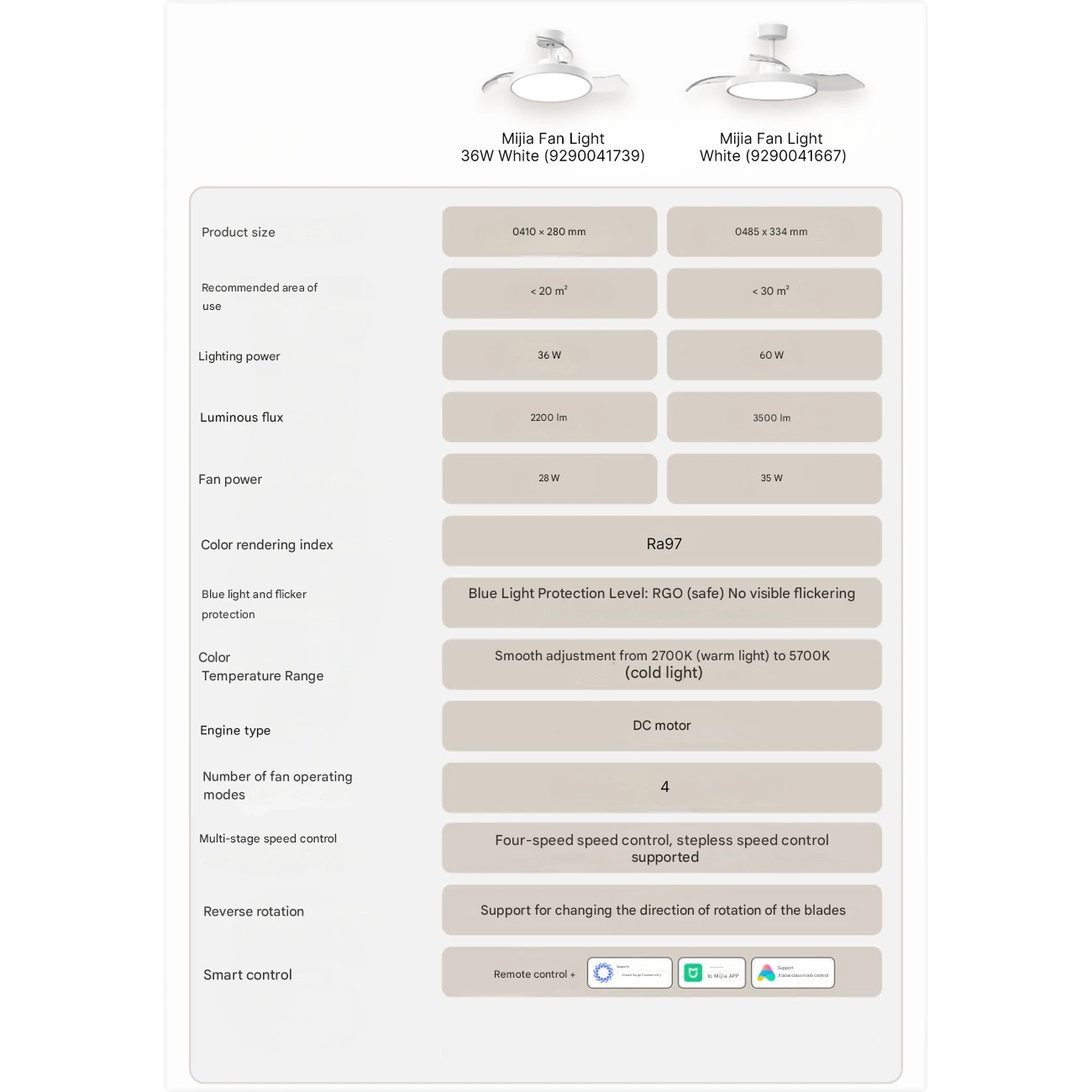 | کنترل از راه دور | ریموت کنترل فیزیکی + کنترل از طریق گوشی و صدا (XiaoAI) |