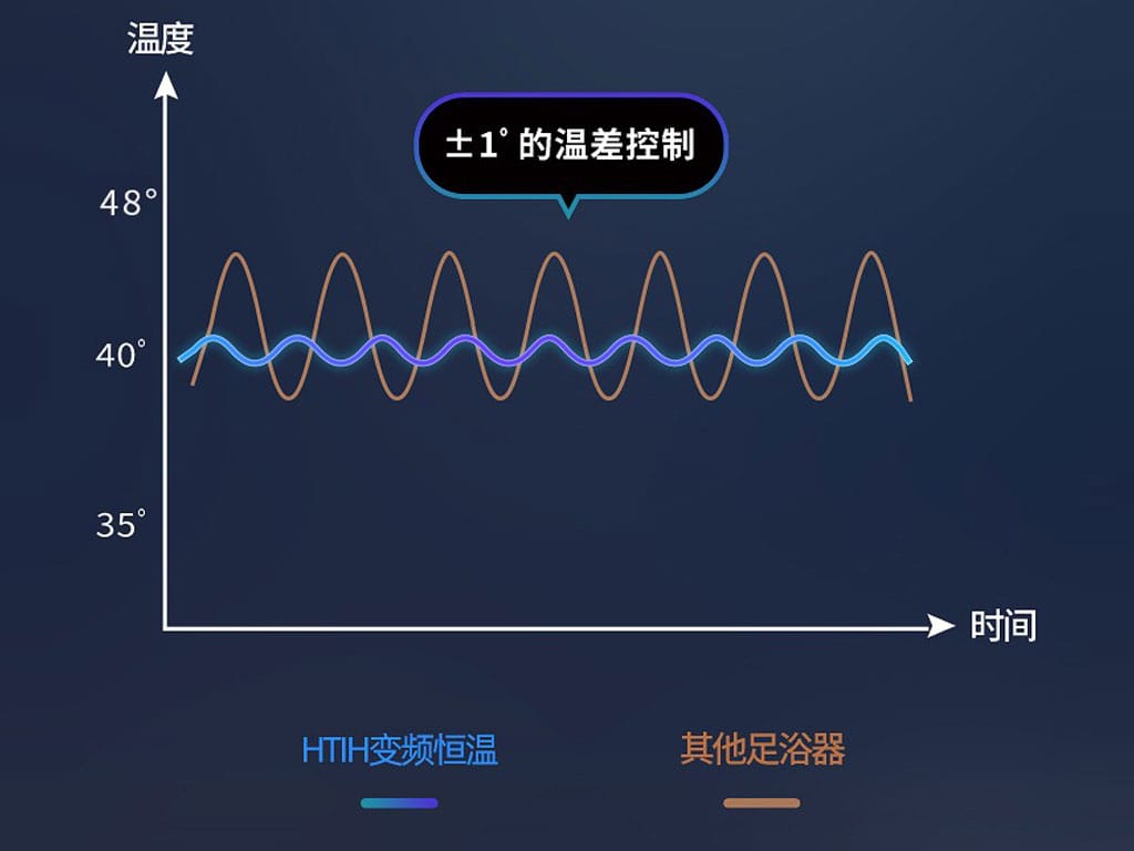 روی بدنه ماساژور پا HITH پنل لمسی ضدآب با نمایشگر دیجیتال طراحی شده. با استفاده از پنل میتوانید میزان گرمای آب را بین 35 تا 48 درجه تنظیم کنید. همچین مدت زمان هم از 5 تا 60 دقیقه قابل تنظیم است. سیستم گرمایش DPS دارای عایق منیزمی به ضخامت 1.2 میلیمتر برای ایمنی و افزایش راندمان حرارتی بالاتر است. هیتر DPS آب و الکتریسته را از هم جدا نگه میدارد و نگرانی وجود الکتریسیته و خطر برق گرفتگی وجود ندارد. در صورت احساس خطر هم به سرعت جریان برق را قطع کرده و خاموش میشود. سنسوری هم برای تشخیص دمای آب درنظر گرفته شده؛ این سنسور دمای آب را در لحظه تشخیص میدهد و به گرم نگهداشتن آب کمک میکند.