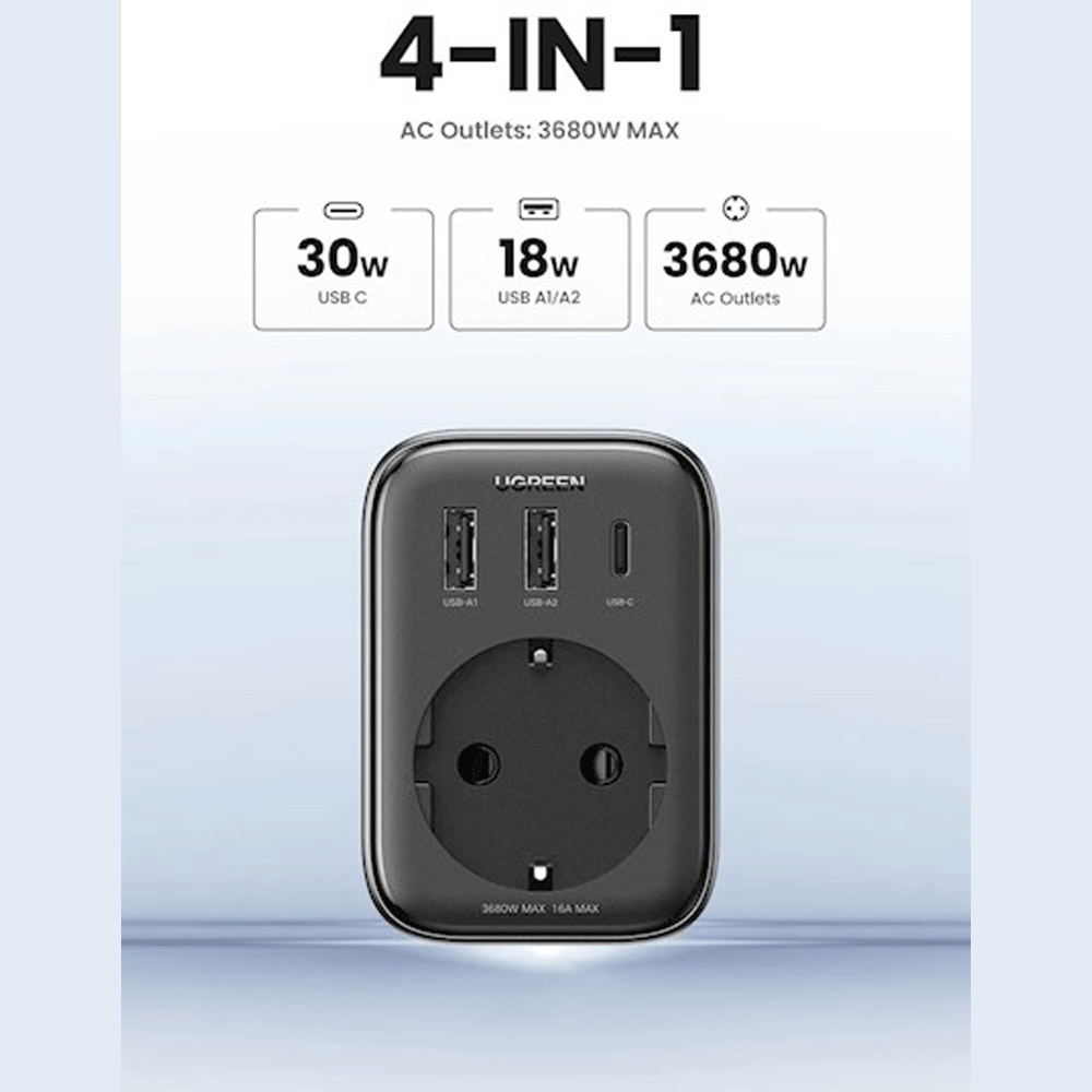 UGREEN CD314 90613 30W Outlet Extender Charger with 1 AC, USB-C and 2 USB Ports