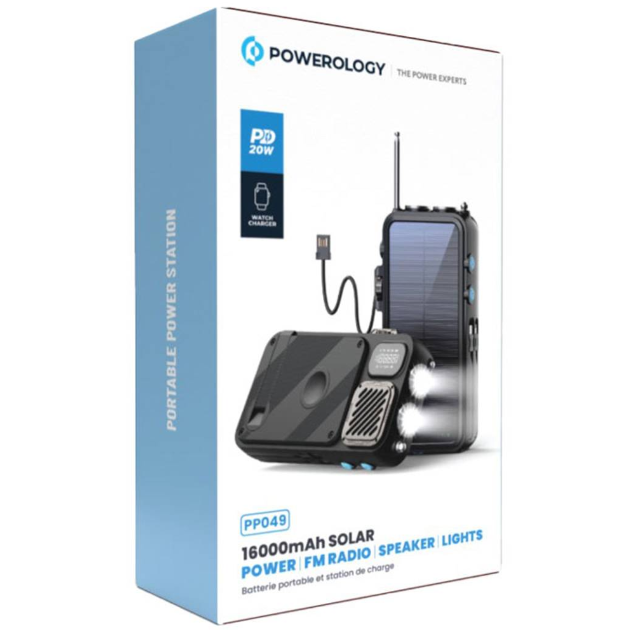 Powerology 16000mAh Solar Power Bank with FM Radio Speaker and Lights PPBCHA49