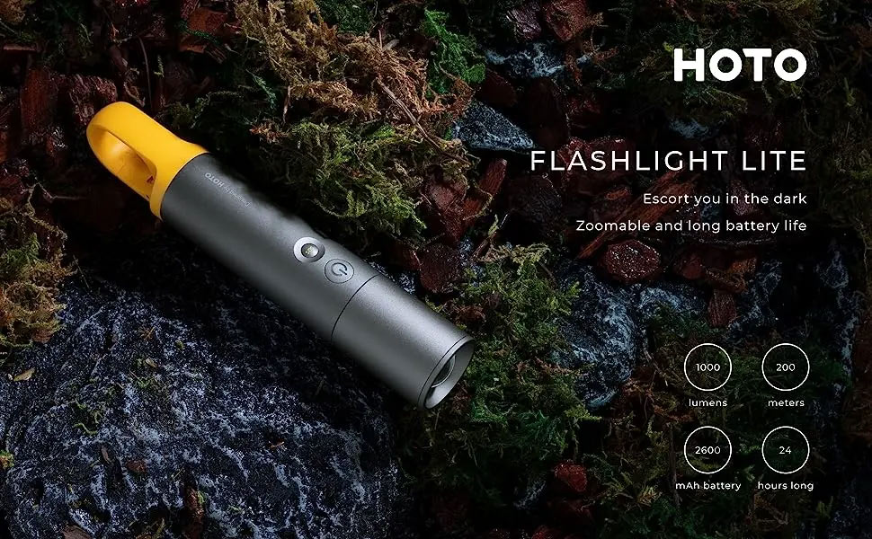 چراغ قوه Hoto یک محصول بسیار مقاوم ساخته شده از آلومنیوم با قابلیت آویزان کردن از طریق گیره انتهایی خود است. با استفاده از مهره های و لامپ پرقدرت، با روشنایی خیره کننده 1000 لومن واقعی این چراغ دستی کوچکی قادر است به خوبی محیط اطراف خود را روشن کند. به راحتی روی دکمه روشن/خاموش کلیک کنید تا بین سه سطح روشنایی (نور کم/ نور متوسط/ نور زیاد) جابجا شوید. همچنین یک دکمه SOS با دو حالت چشمک زن (SOS و Strobe) برای انتخاب در دسترس است، و محافظت دوگانه برای هشدار و درخواست کمک. لازم به ذکر است نور نرم و پایدار است، بنابراین به طور موثر خستگی بینایی را کاهش می دهد.