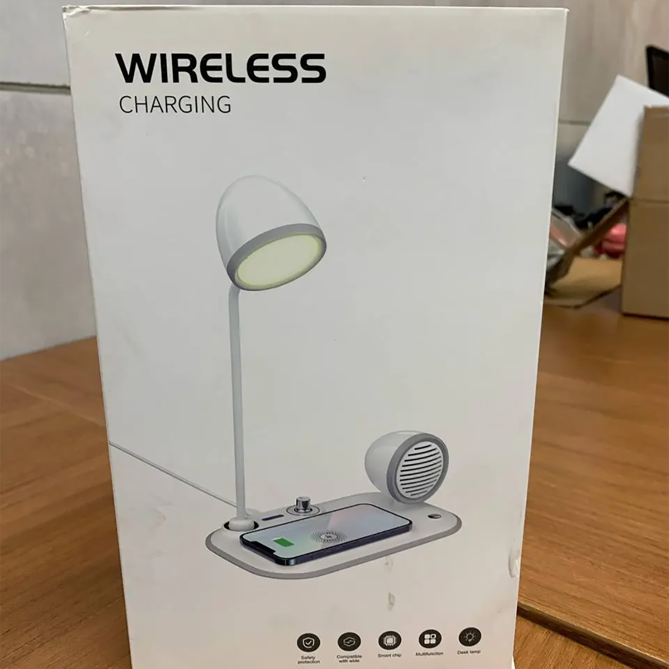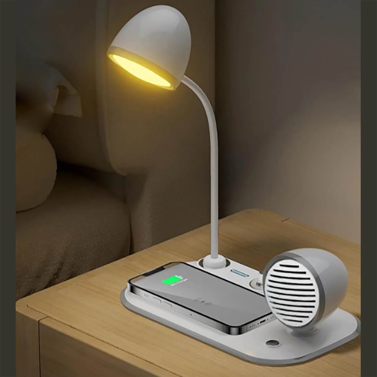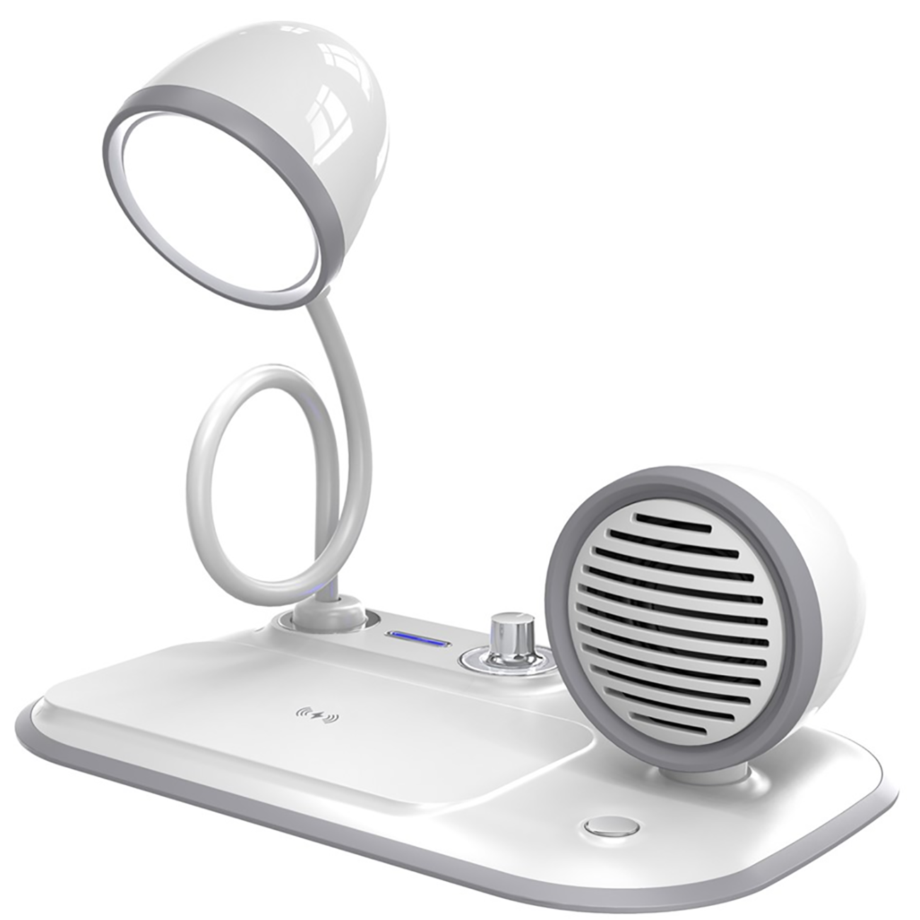 چراغ مطالعه و شارژر وایرلس 15 وات رومیزی اسپیکر دار
