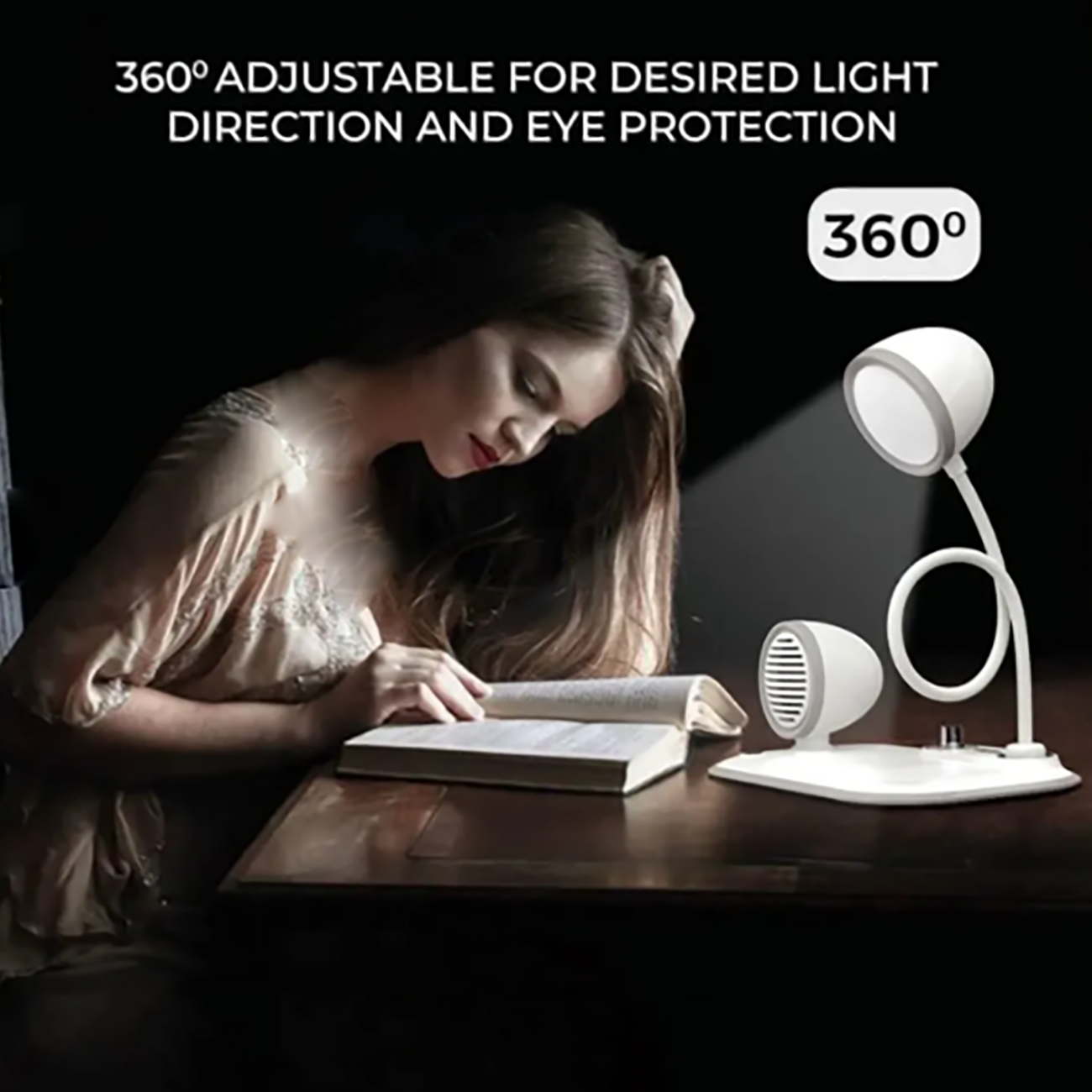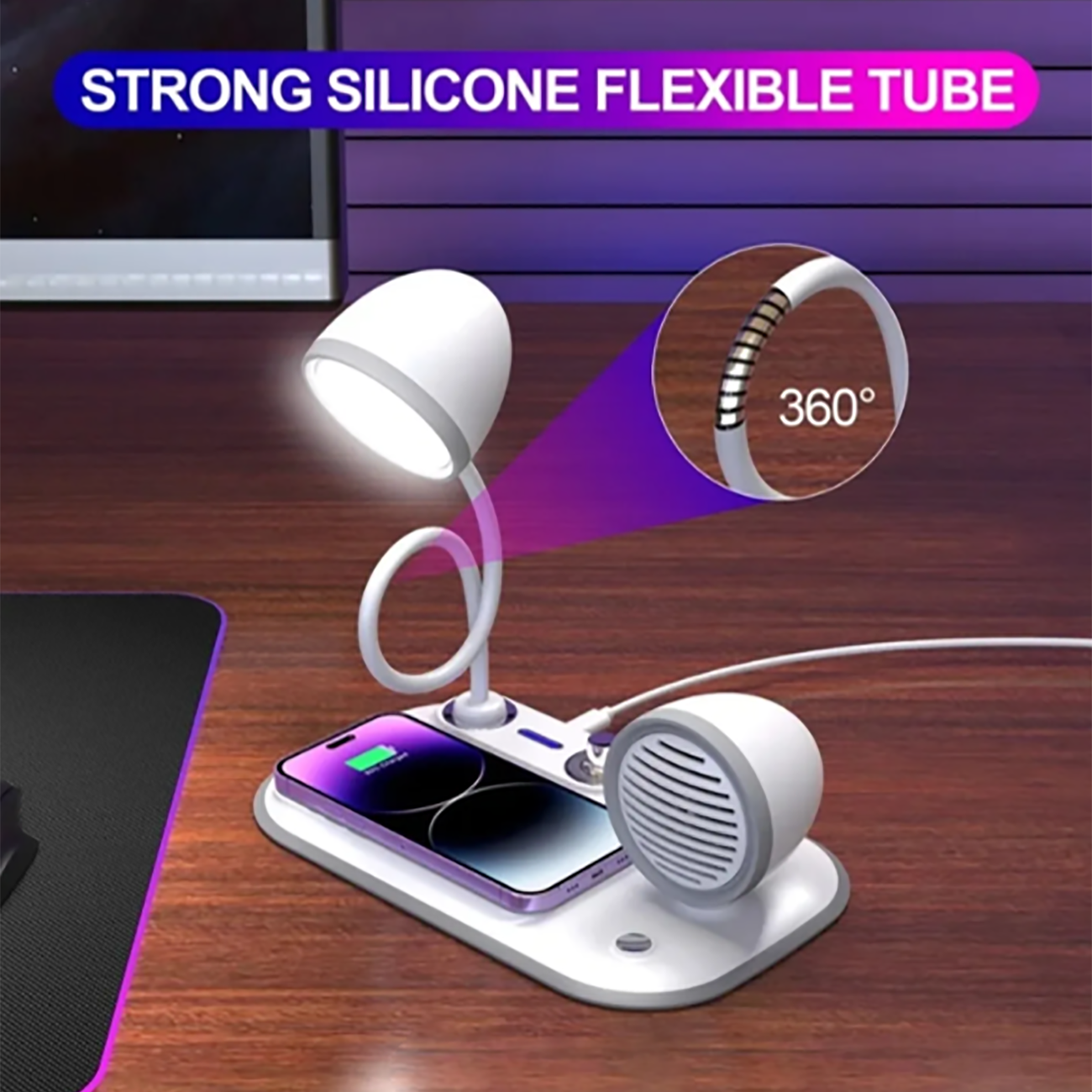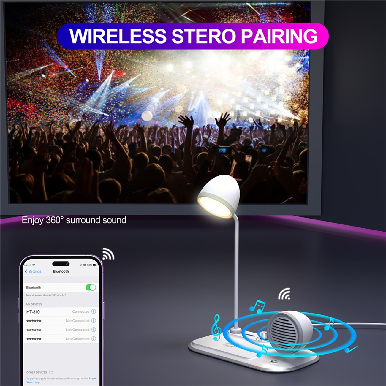 چراغ مطالعه و شارژر وایرلس 15 وات رومیزی اسپیکر دار