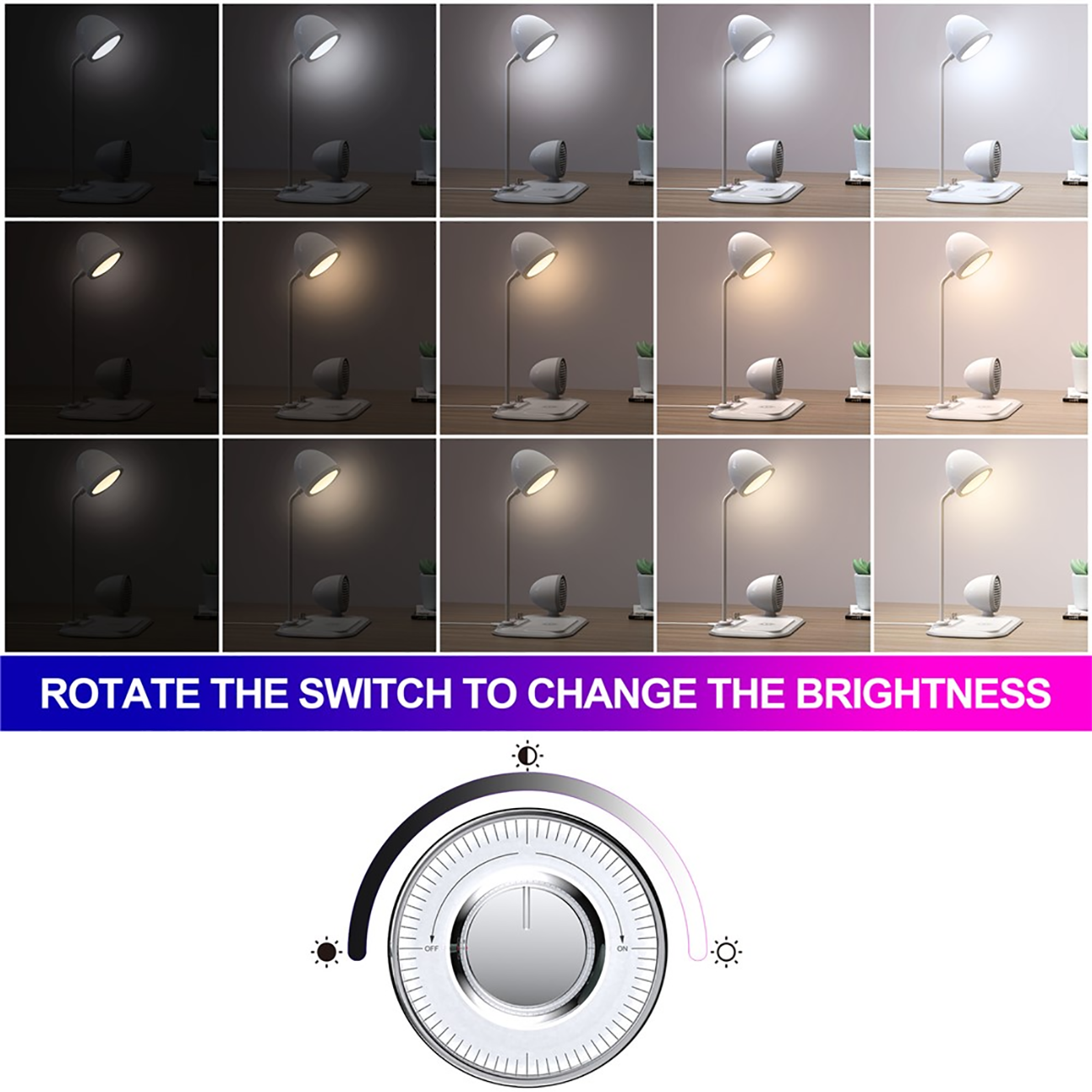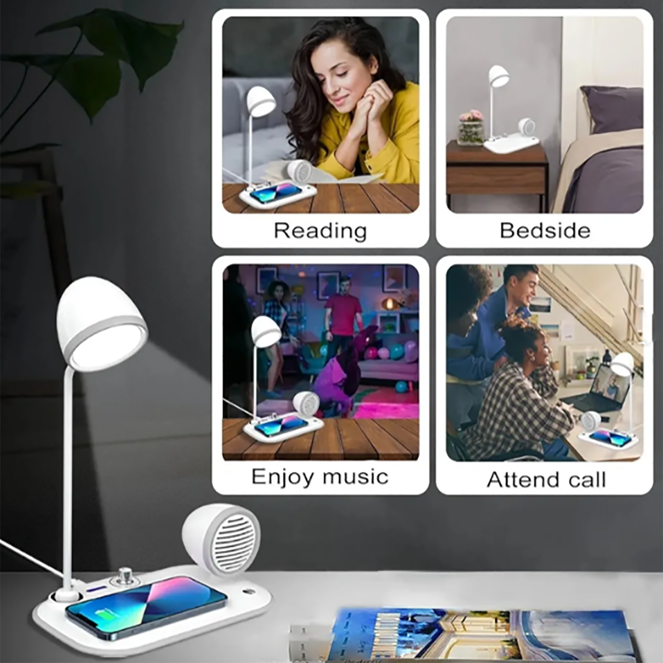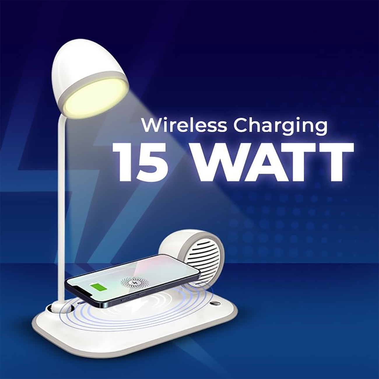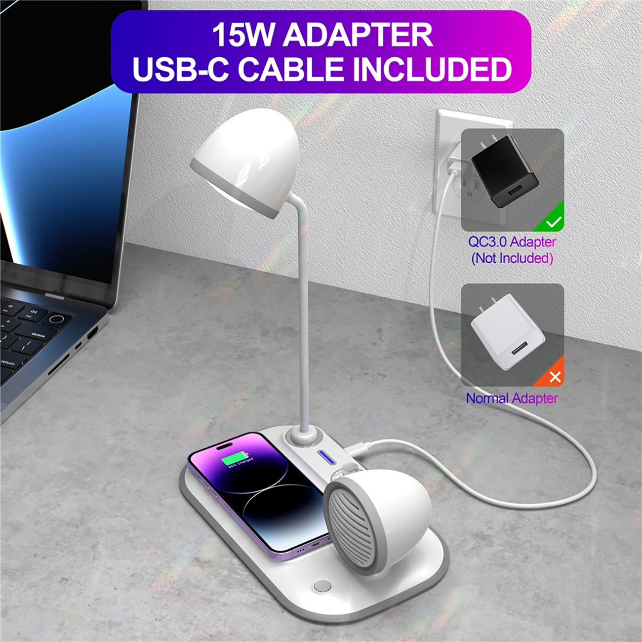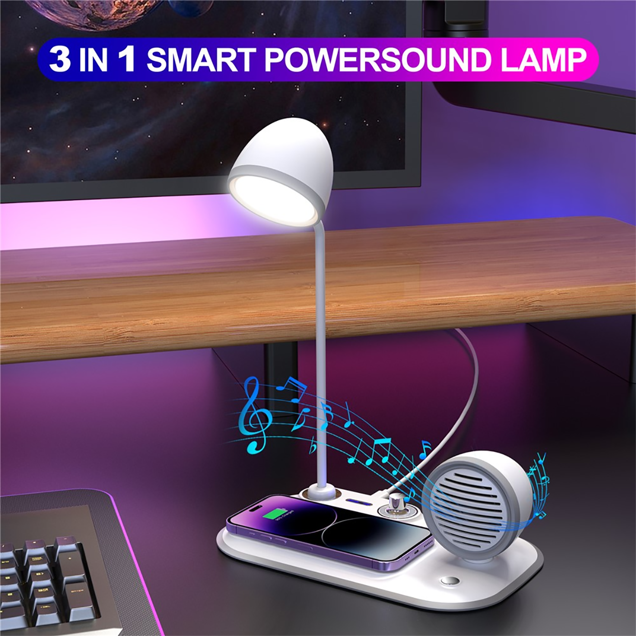 WIRELESS CHARGING 3-in-1 Wireless Charger 3 Light Modes LED Desk Lamp with Bluetooth Speaker