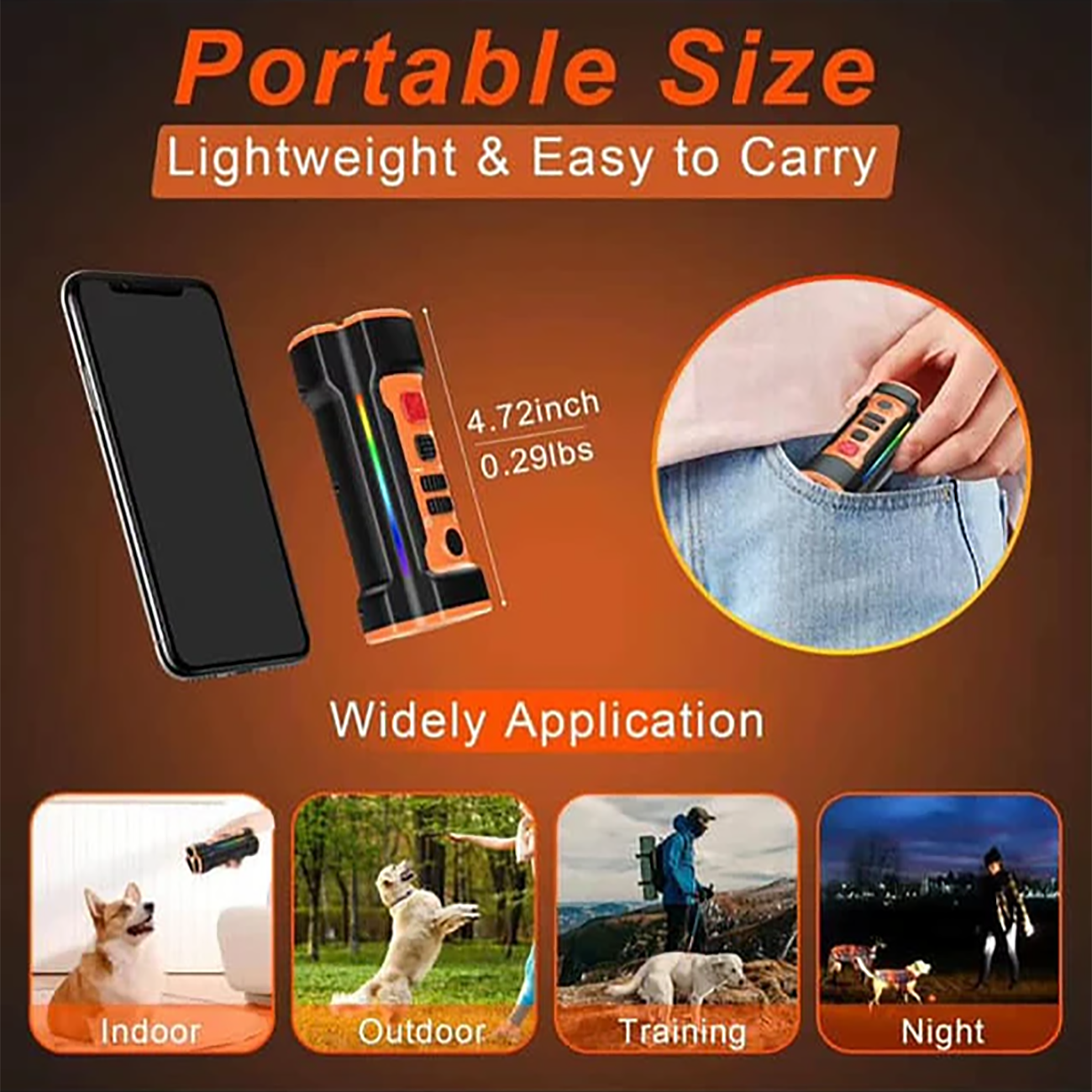 | سه قابلیت مفید | صدای اولتراسونیک برای متوقف کردن صدا و رفتارهای نادرست، حالت بوق هشدار برای آموزش، و چراغقوهی پرنور برای پیادهروی شبانه یا مواقع ضروری |