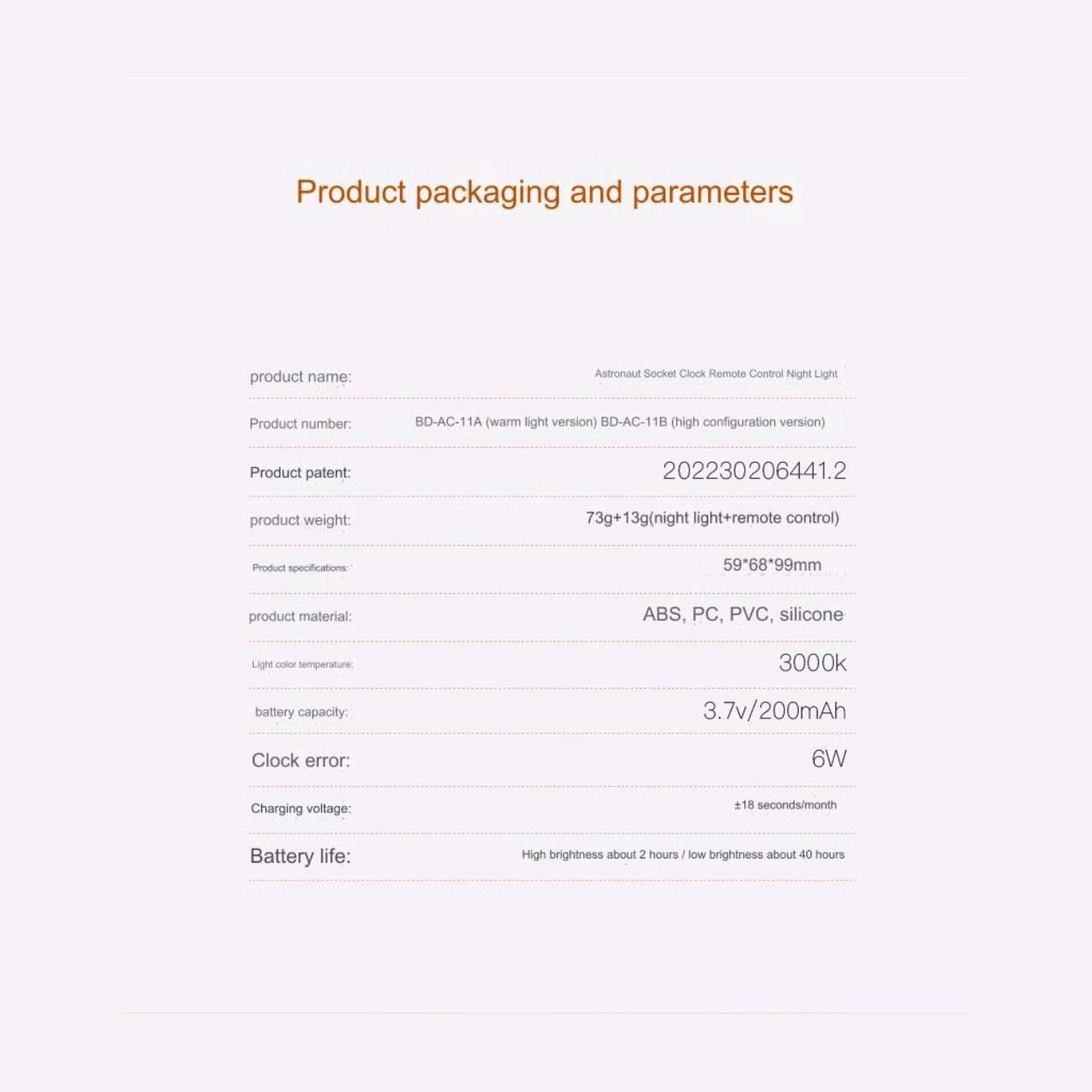 Astronaut Socket Clock Remote Control Night Light BD-AC-11A BD-AC-11B