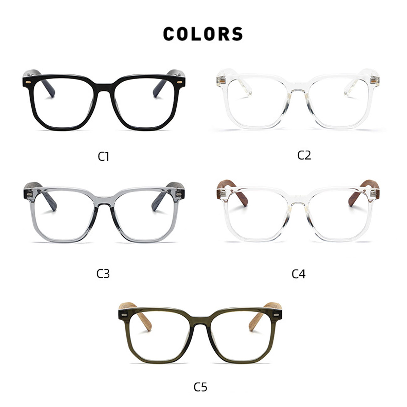 | رنگبندی | مشکی براق C1، شفاف براق C2، خاکستری شفاف براق/خاکستری مات طرح چوب C3، قهوهای براق شفاف/زرد مات طرح چوب C4، سبز میوهای روشن شفاف/زرد مات طرح چوب C5 |