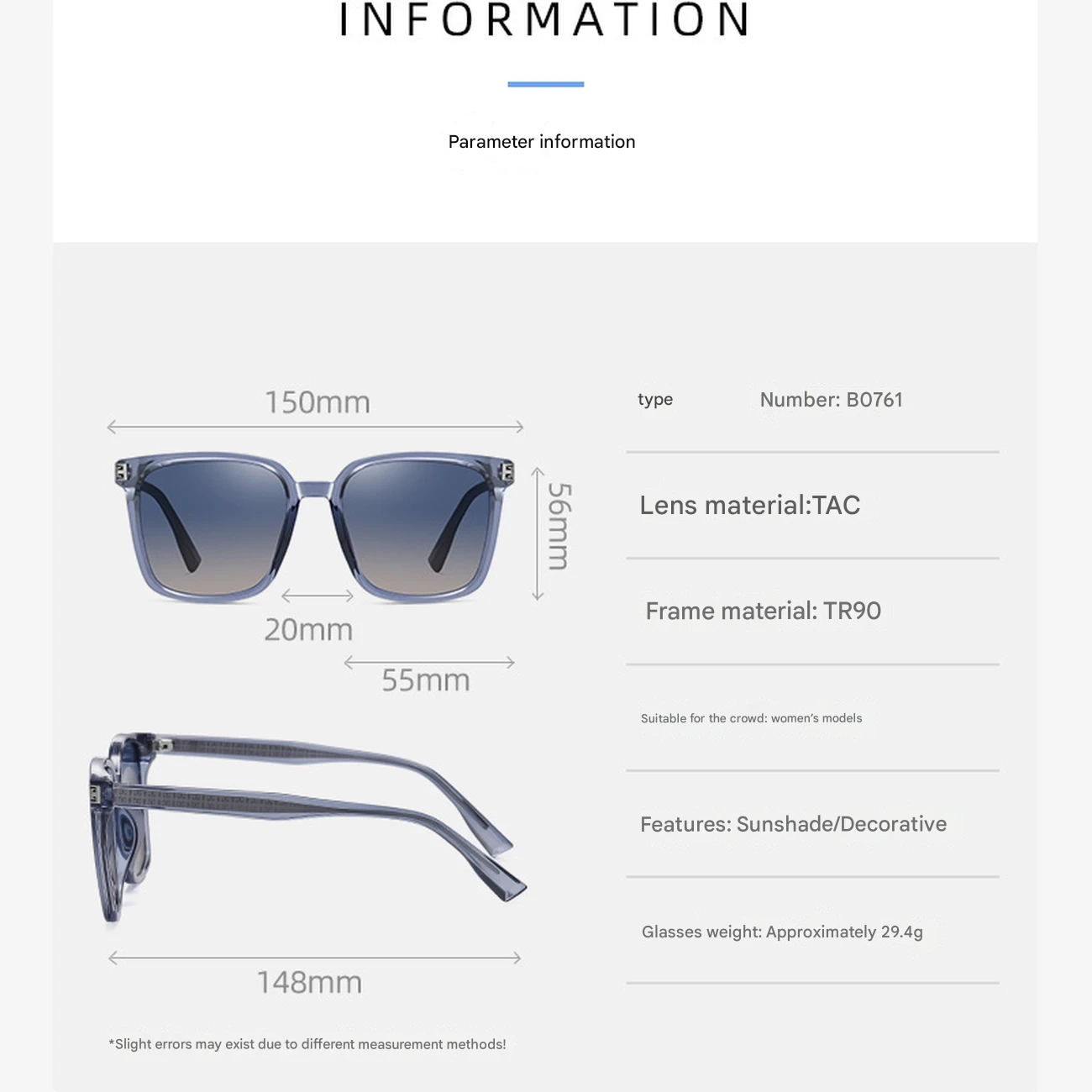 | نوع فریم | مربعی بزرگ (Oversized) |
