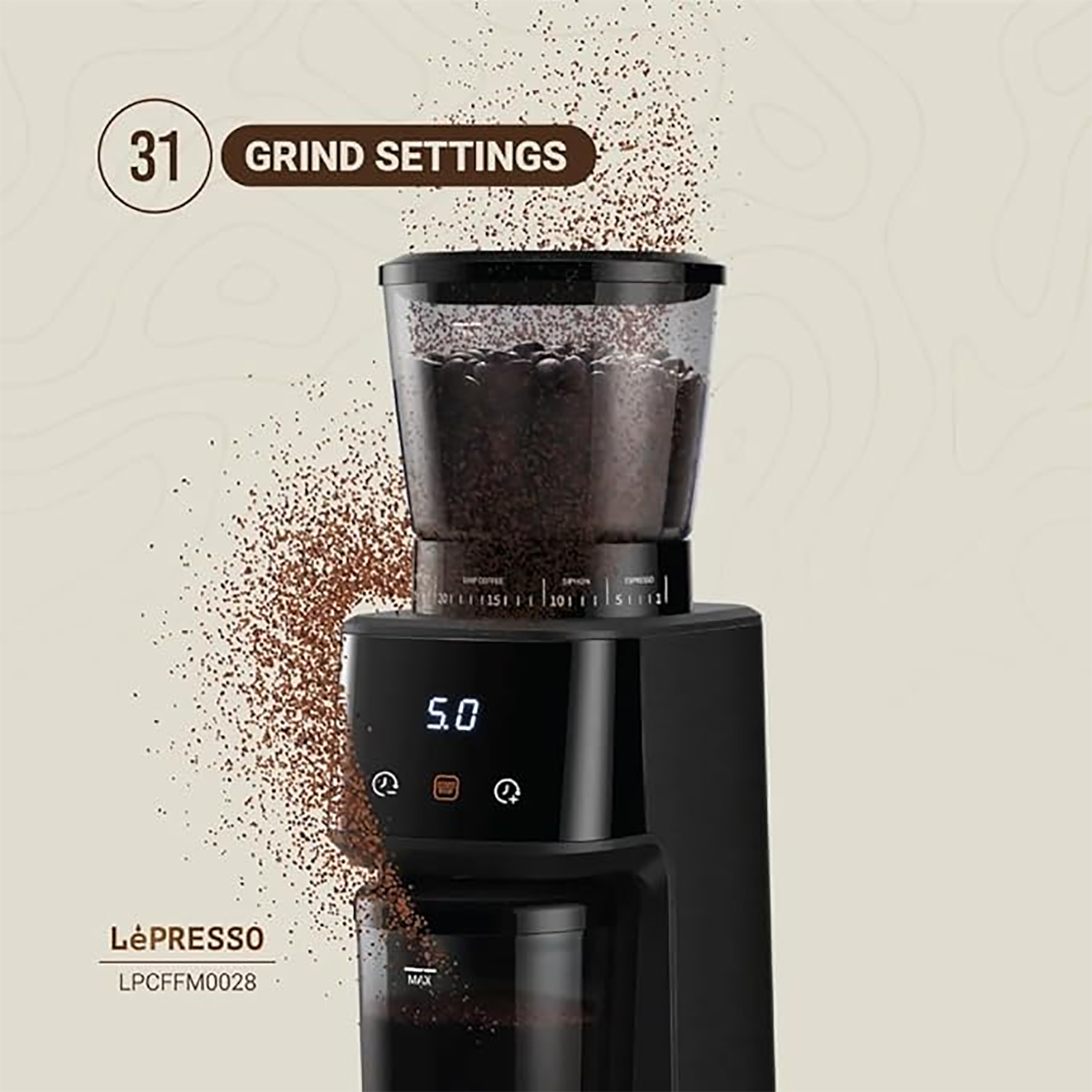 آسیاب قهوه لپرسو Lepresso مدل LPCFFM0028 دیجیتالی تایمردار